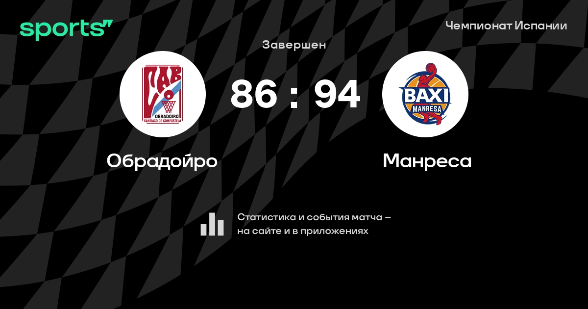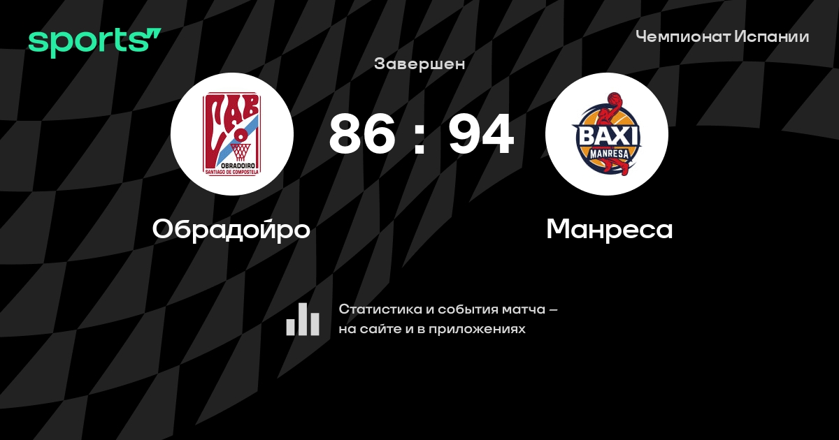 В прошедшем матче в рамках турнира Чемпионат Испании состоялась встреча команд Обрадойро - Манреса в городе Santiago de Compostela на стадионе Pabellón Multiusos Fontes do Sar