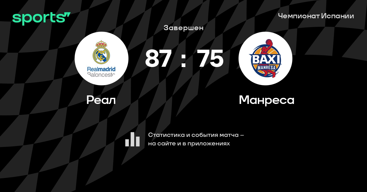 В прошедшем матче в рамках турнира Чемпионат Испании состоялась встреча команд Реал - Манреса в городе Мадрид (Испания) на стадионе Мовистар Арена (вместимость - 15000)