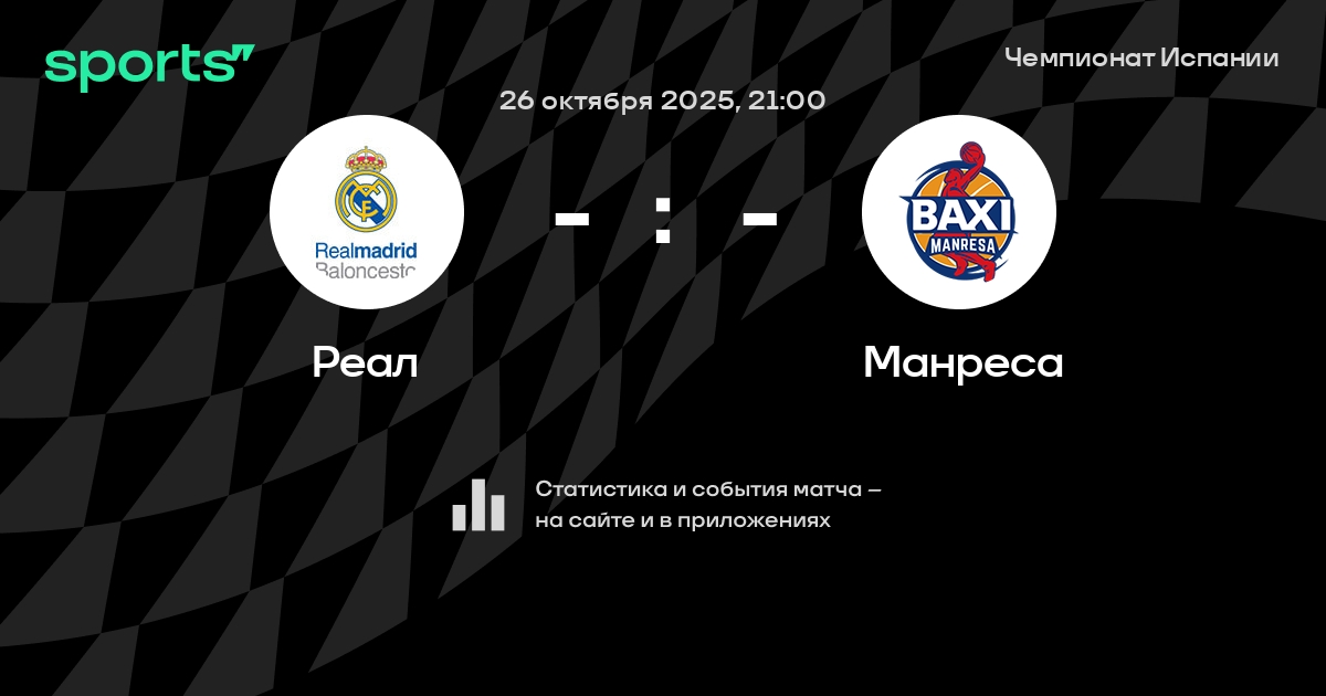 В предстоящем матче в рамках турнира Чемпионат Испании пройдет встреча команд Реал - Манреса в городе Мадрид (Испания) на стадионе Мовистар Арена (вместимость - 15000).