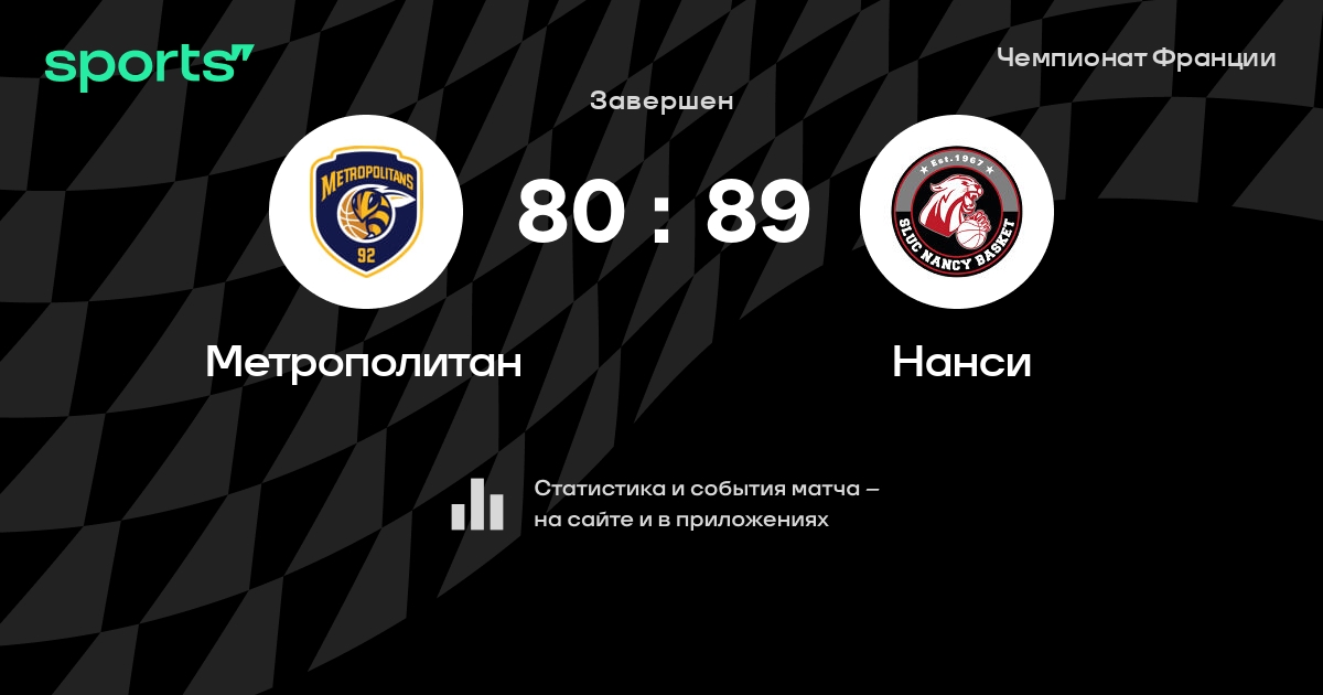 В прошедшем матче в рамках турнира Чемпионат Франции состоялась встреча команд Метрополитан - Нанси в городе на стадионе Palais des Sports Marcel Cerdan