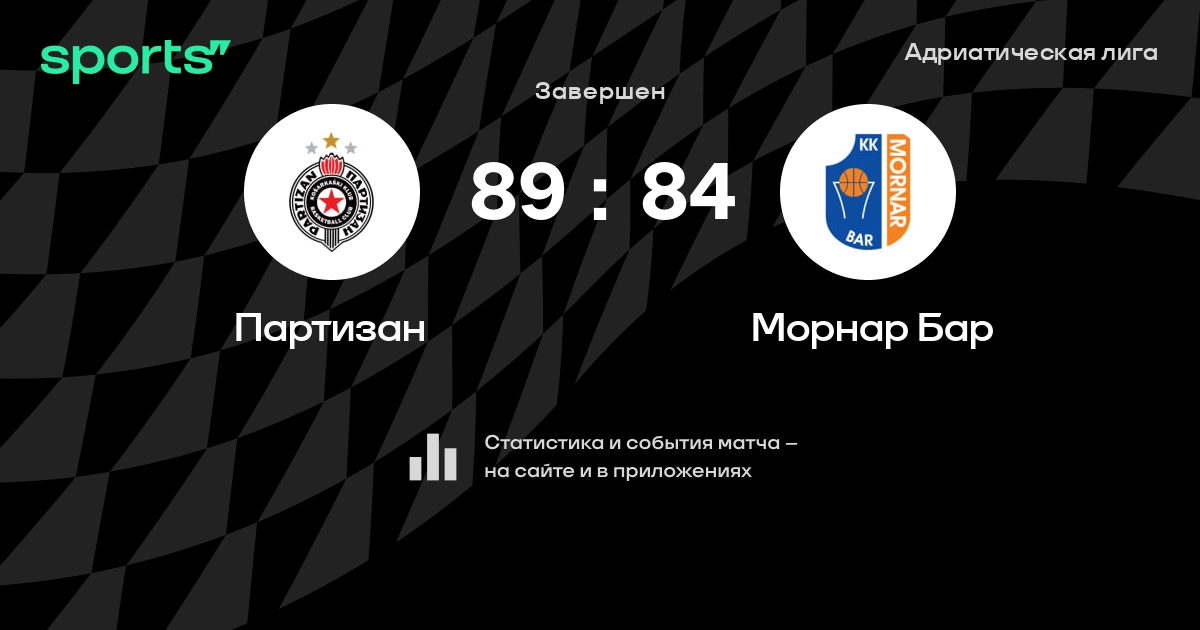 В прошедшем матче в рамках турнира Адриатическая лига состоялась встреча команд Партизан - Морнар Бар в городе Белград (Сербия) на стадионе Белград Арена (вместимость - 22386)