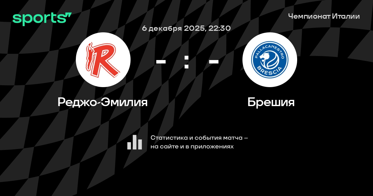 В предстоящем матче в рамках турнира Чемпионат Италии пройдет встреча команд Реджо-Эмилия - Брешия в городе на стадионе Palasport Bigi.