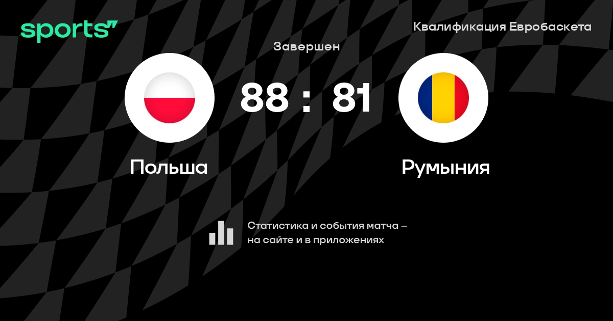 В прошедшем матче в рамках турнира Квалификация Евробаскета состоялась встреча команд Польша - Румыния в городе на стадионе Gliwice Arena со счетом 88 : 81.