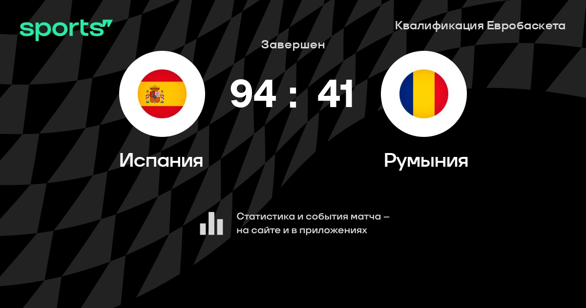 В прошедшем матче в рамках турнира Квалификация Евробаскета состоялась встреча команд Испания - Румыния в городе Валенсия (Испания) на стадионе Ла Фонтета (вместимость - 9000)