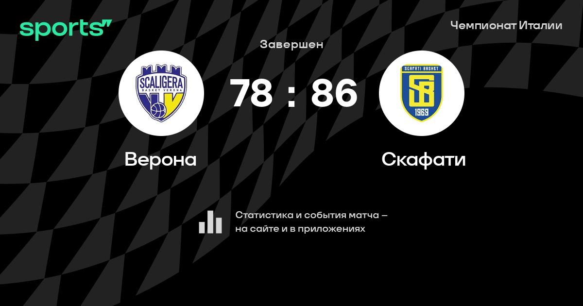 В прошедшем матче в рамках турнира Чемпионат Италии состоялась встреча команд Верона - Скафати в городе на стадионе PalaOlimpia со счетом 78 : 86.