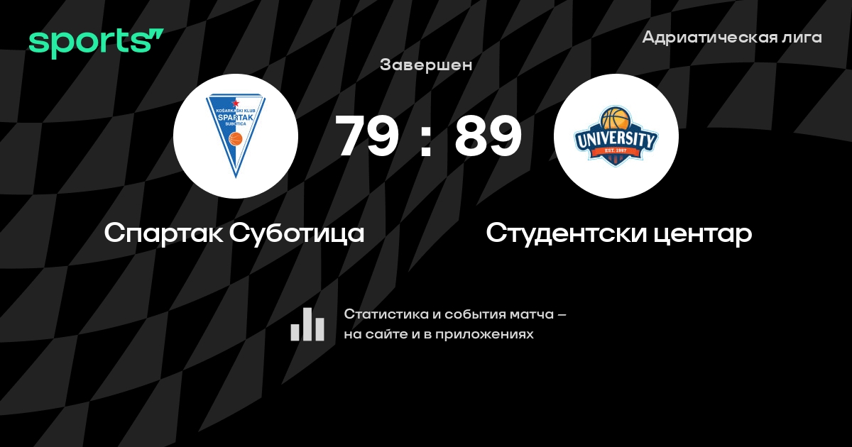 В прошедшем матче в рамках турнира Адриатическая лига состоялась встреча команд Спартак Суботица - Студентски центар в городе на стадионе Sportska hala Dudova Šuma