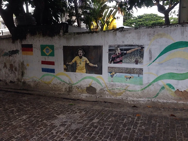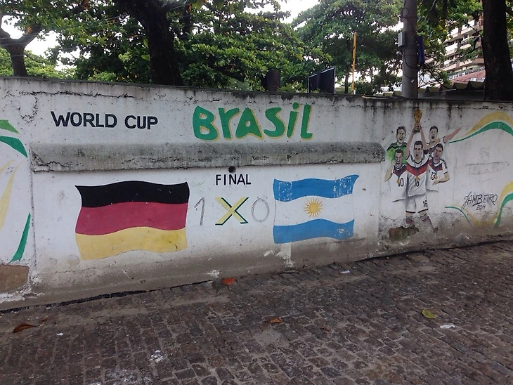 На этом моя прогулка по Копакабане не закончилась. Дойдя до конца пляжа, я наткнулся на такое вот граффити, напоминающее о Чемпионате мира по футболу 2014 года: трагедия Бразилии, триумф Германии.
