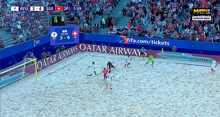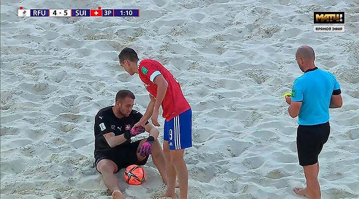 Сборная России по пляжному футболу одолела швейцарцев в полуфинале домашнего ЧМ – 5:5 (5:4 по пенальти).