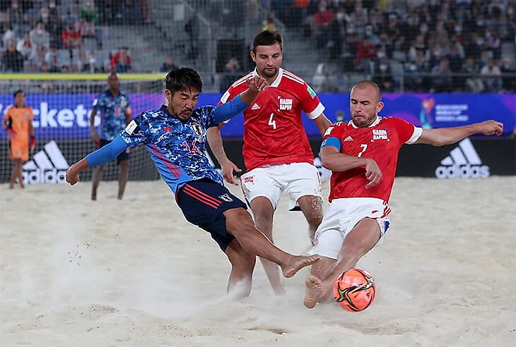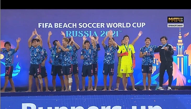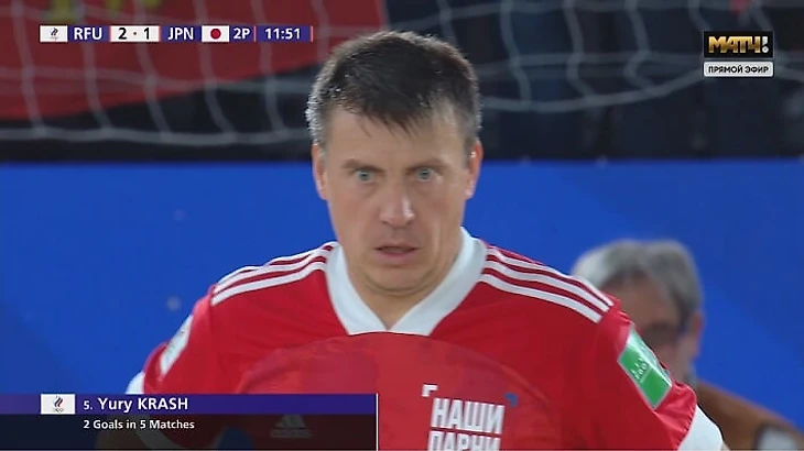 19:09. У японцев в стартовом составе играющий тренер – Озу Морейра. Он родился в Бразилии, но переехал в Японию и уже 15 лет поднимает там пляжный футбол.