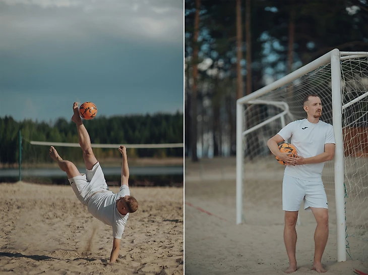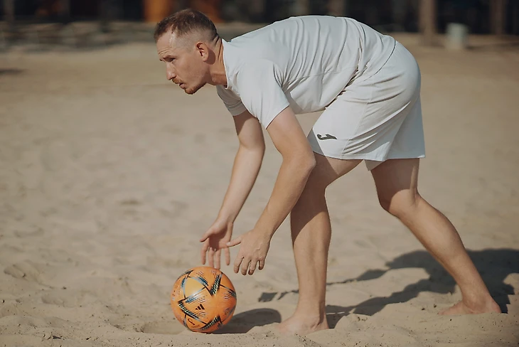 Спустя годы Александр открыл для себя новый формат — пляжный футбол. Сначала кажется, что песок забирает силы, каждый шаг даётся тяжелее. Но именно в этом и кроется магия игры.