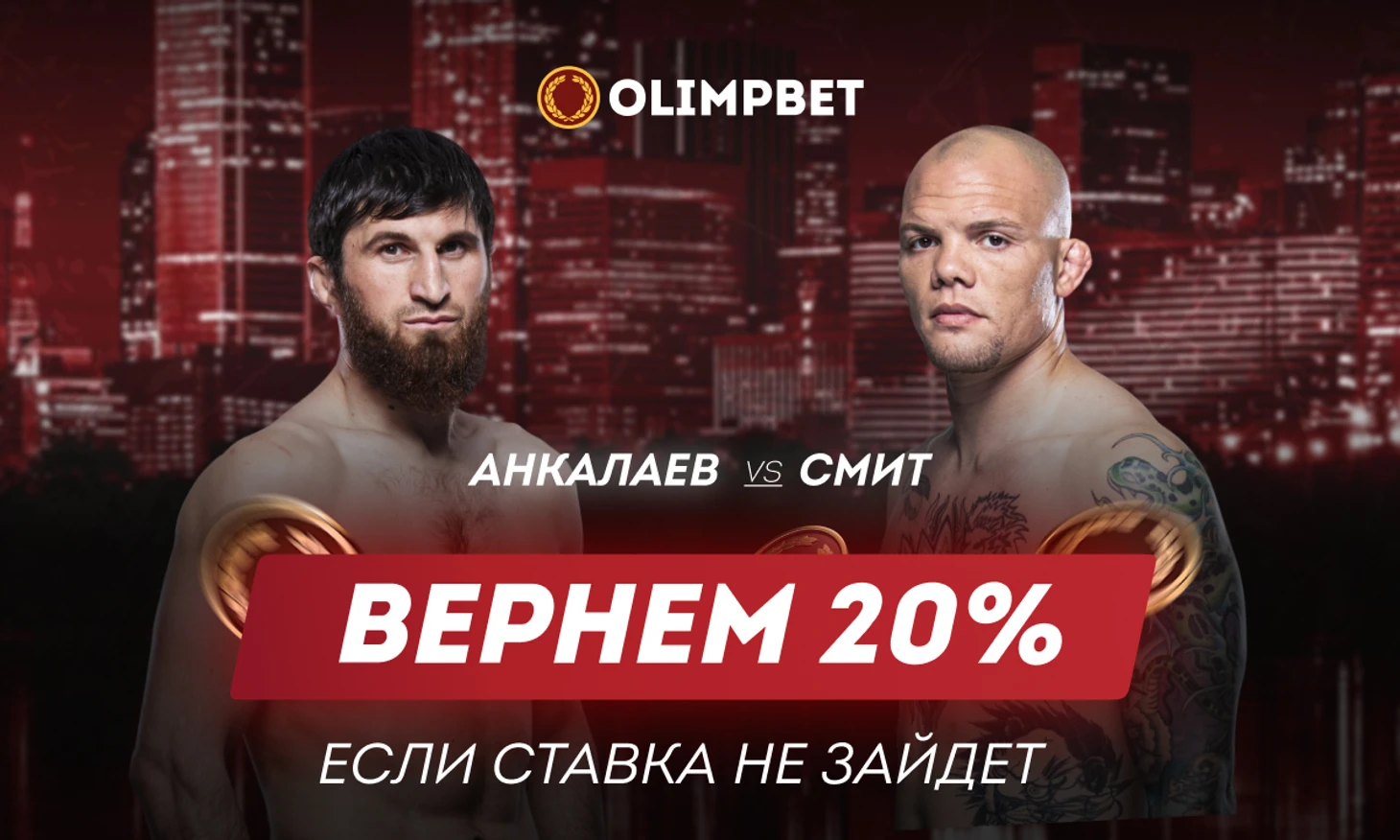 Анкалаев будет фаворитом боя со Смитом, но Olimpbet застрахует своих клиентов на случай сенсации. Делайте ставку на победу россиянина, а если он не выиграет, то компания вернет 20%.