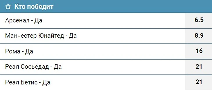 Ну а главный претендент – лондонский «Арсенал» с 15% вероятности. Парни Артеты в первом туре группового этапе обыграли на выезде «Цюрих».