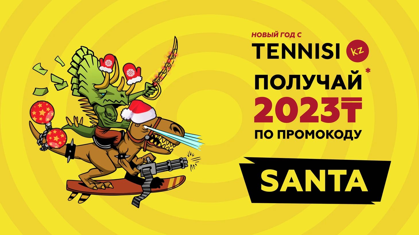 К 2023 году по промокоду SANTA Tennisi.kz дарят по 2023 тенге. Чтобы получить их, нужно ввести промокод, а потом пополнить на сумму от 1500 тенге и ждать свой подарок на основном счете. Акция действует до 5 января включительно.