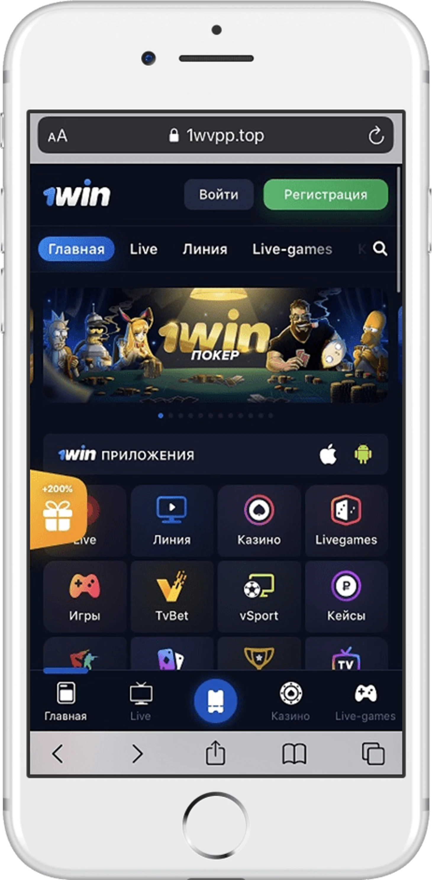 При входе в приложение 1Win на iOS у вас отобразится главная страница сайта. Где у вас перед глазами в средней его части будет большое количество различных иконок, среди которых есть такие необычные для букмекерской конторы, как Poker, Кейсы, 1Win TVBET, vSport, Казино. Вы можете зайти в каждую из платформ и ознакомиться с тем, что там есть, посмотреть вы можете это абсолютно бесплатно. А вот если захотите сыграть, Следуйте инструкциям, которые там указаны.