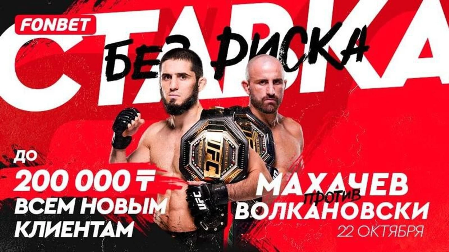 Всем новым клиентам FONBET дарит фрибет до 200 000 тенге при регистрации и специально под UFC 294 запускает беспроигрышную акцию: соберите экспресс из событий турнира с коэффициентом от 3.00, и в случае проигрыша вам вернется 100% от суммы ставки на бонусный счет – http://www.fonbet.kz/s/vtnD1v
