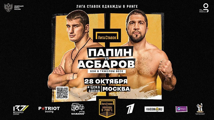 Российские боксёры Алексей Папин (15-1, КО 14) и Сослан Асбаров (4-0, КО 1) 28 октября на московской «ЦСКА Арене» проведут очный поединок в первом тяжёлом весе. Этот бой возглавит очередное шоу «Лига Ставок. Однажды в ринге», организованное «Iron&Gloves Promotions» при поддержке Федерации бокса России.