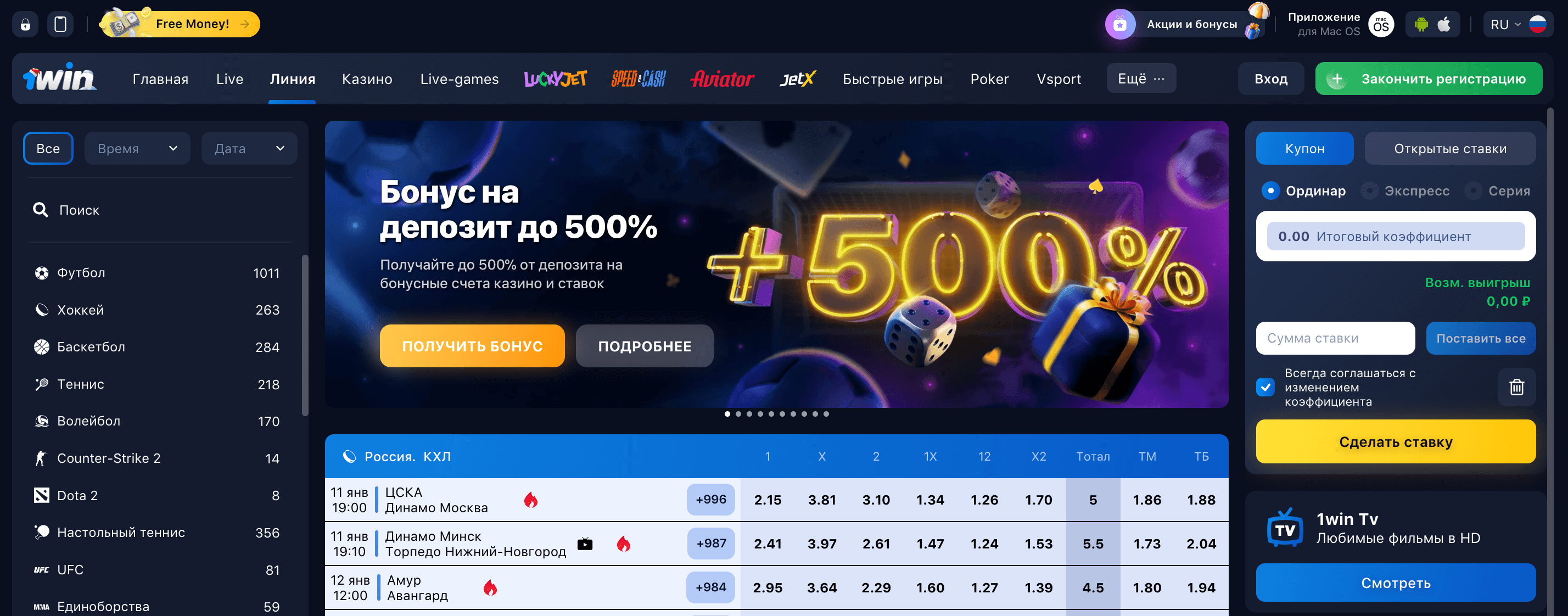 Промокод 1WIN на 500% на первые 20 депозитов: ff8bonus200