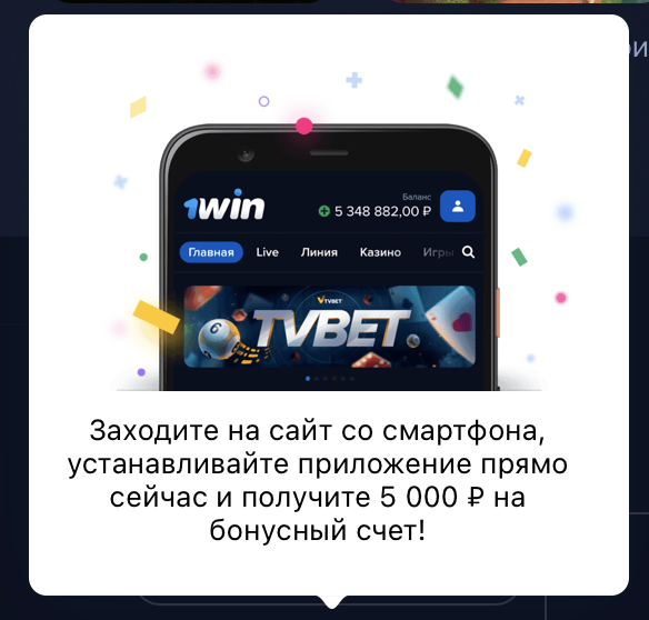 У букмекерской конторы 1Win есть мобильное приложение, которое работает на смартфонах с ОС Android и iOS. За установку приложения можно получить бонус 5 000 рублей.