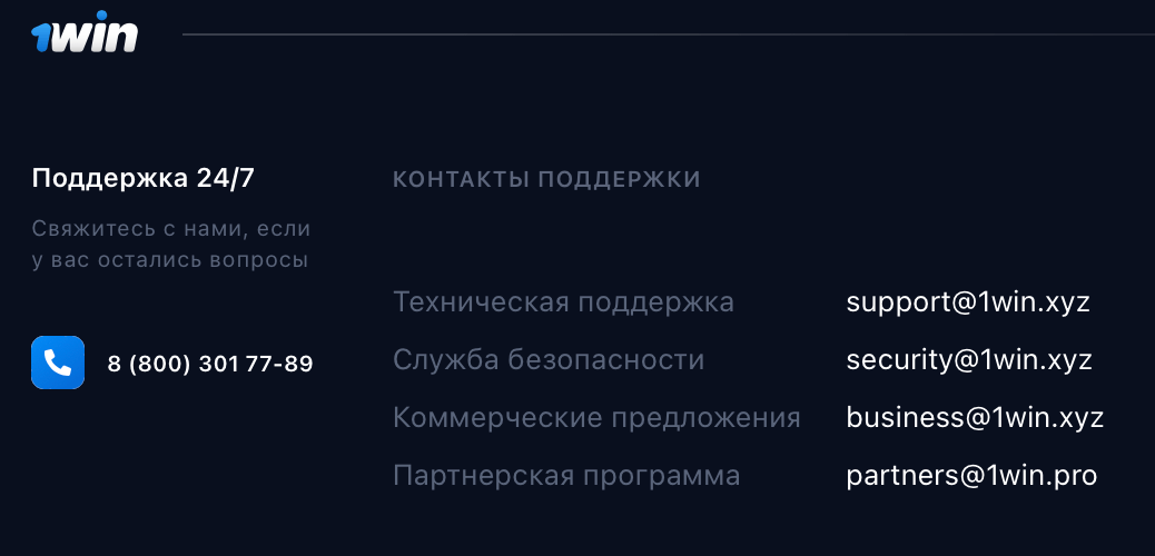 Это основные способы связи со службой поддержки букмекерской конторы 1Win.