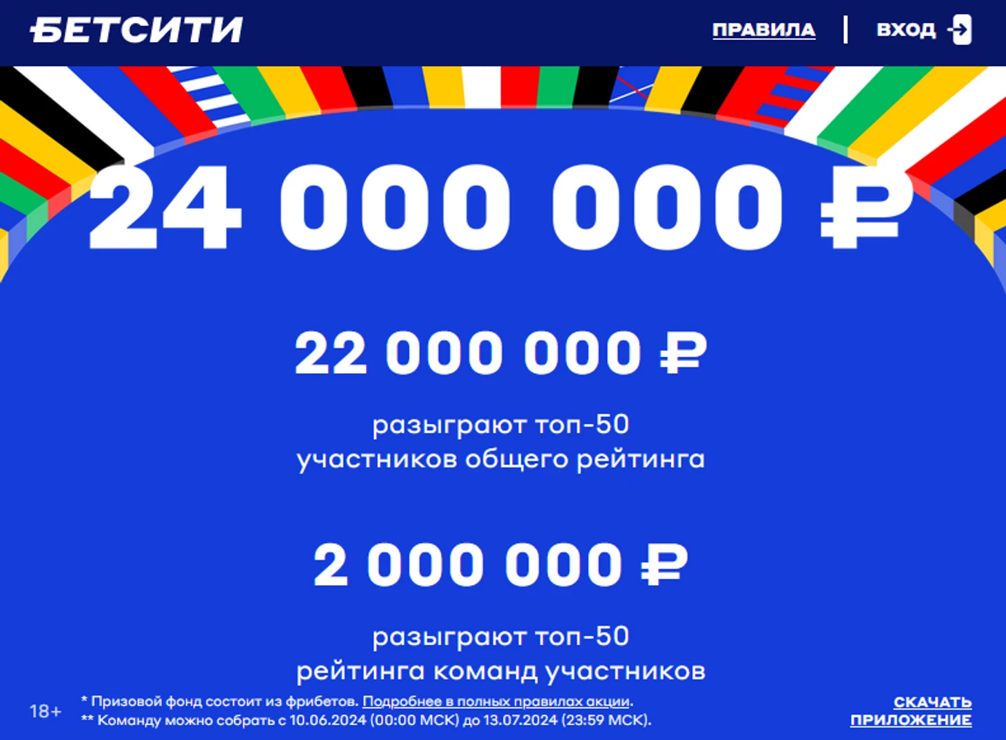«Твоя команда» от БЕТСИТИ: разыгрываем 24 млн рублей фрибетами на ЧЕ-2024