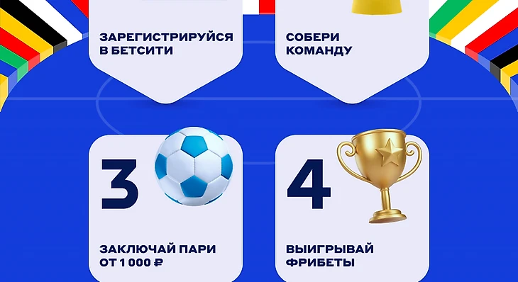 Не забудьте сделать хотя бы 3 ставки на игры Евро-2024, чтобы выполнить все условия акции и претендовать на максимальный выигрыш.