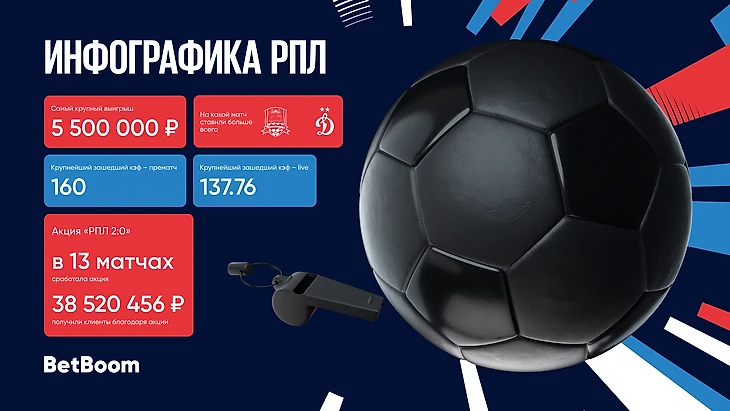 BetBoom подвёл итоги РПЛ: 3 000 000 на победу «Динамо» и ординар с коэффициентом 160