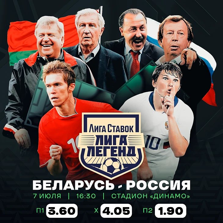Российский футбольный союз (РФС) при поддержке Белорусской федерации футбола (АБФФ) 7 июля проведет ретро-матч «Лига Ставок Лиги Легенд», приуроченный ко Дню независимости Республики Беларусь и 80-летию освобождения Белорусской ССР от фашистских захватчиков.