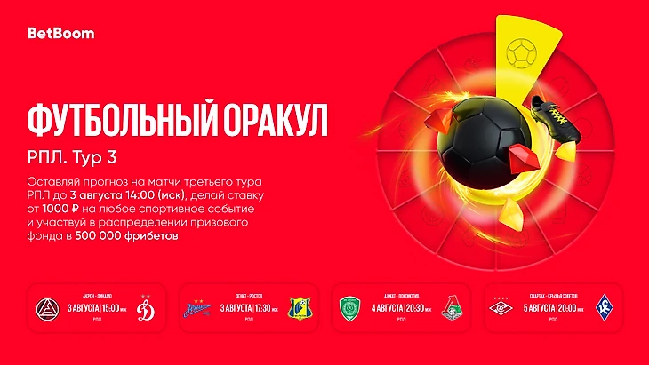 500 000 фрибетов за предсказания победителей матчей РПЛ. В BetBoom стартует акция «Футбольный Оракул»!