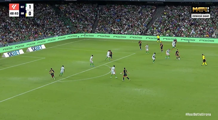 Рекламу «Лиги Ставок» заметили в трансляции матча Ла Лиги «Бетис» – «Жирона» (1:1).