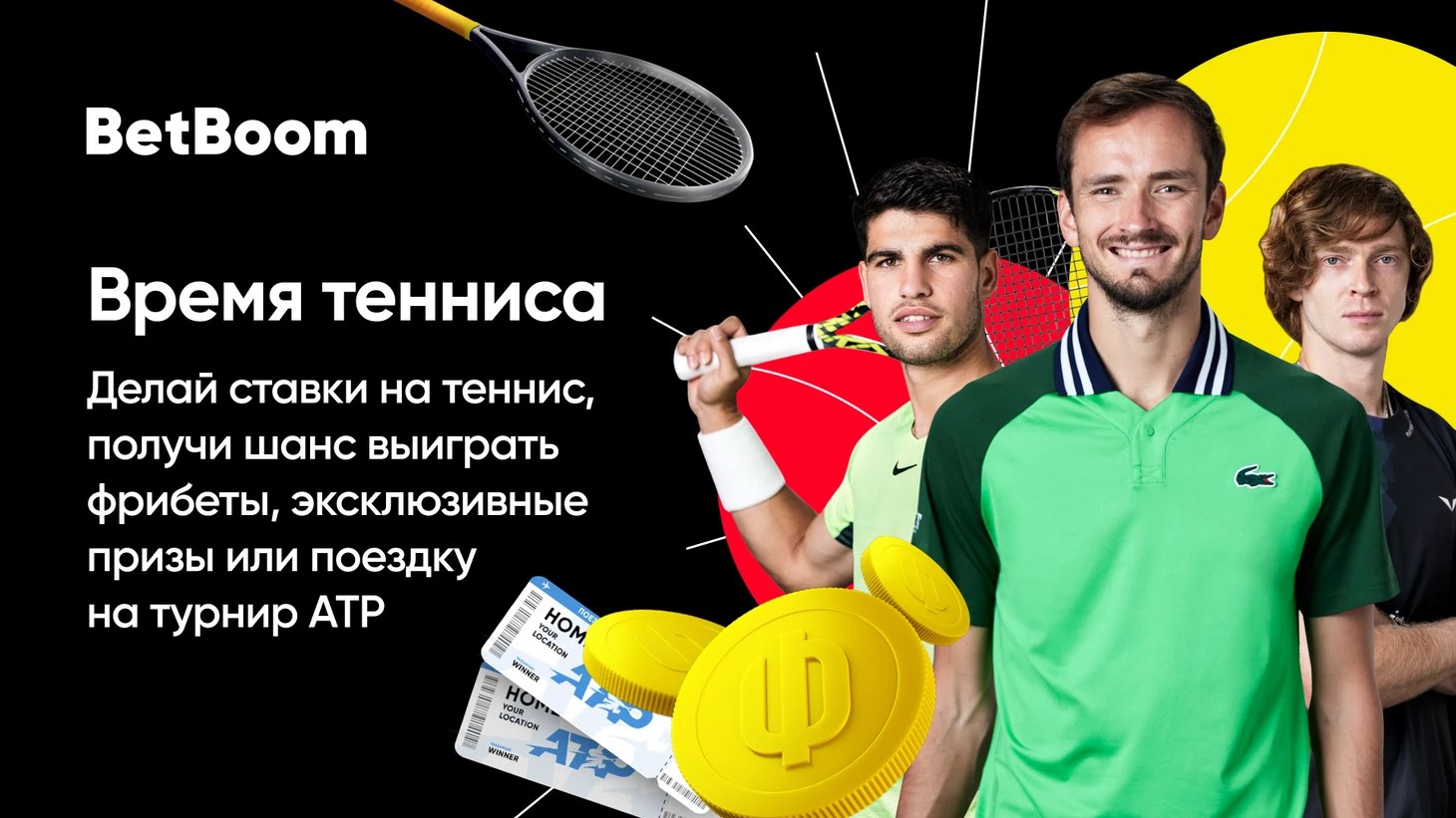 BetBoom запустил акцию «Время тенниса». Главный приз — поездка на турнир АТР. Заключай пари онлайн, забирай фрибеты и получи возможность поучаствовать в розыгрыше призов!