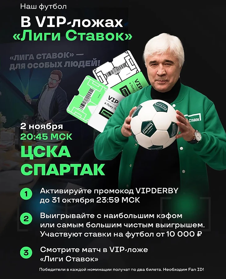 2 ноября состоится матч 14-го тура Российской Премьер-Лиги сезона 24/25 «ЦСКА» – «Спартак». В преддверии игры «Лига Ставок» разыгрывает 4 билета в VIP-ложу.