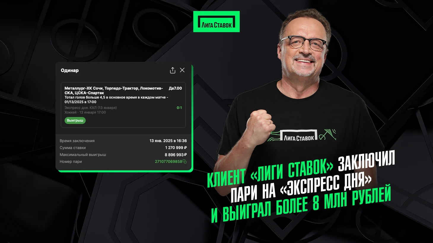 Клиент «Лиги Ставок» заключил пари на «Экспресс дня» и выиграл более 8 млн рублей