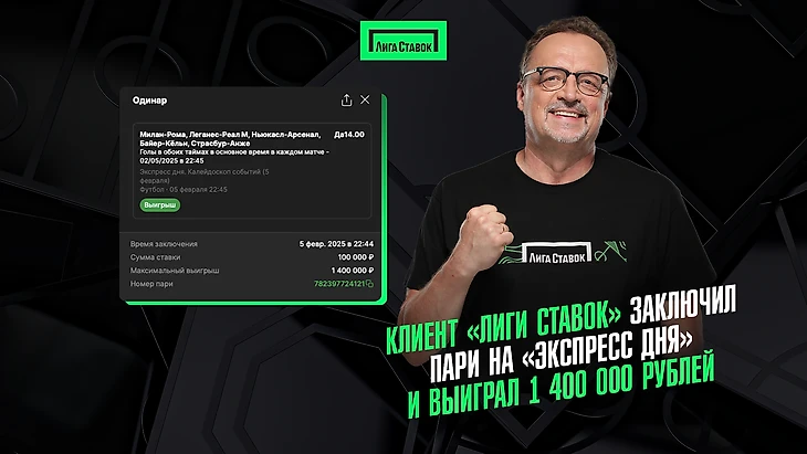 Клиент «Лиги Ставок» заключил пари на «Экспресс дня» и выиграл 1 400 000 рублей
