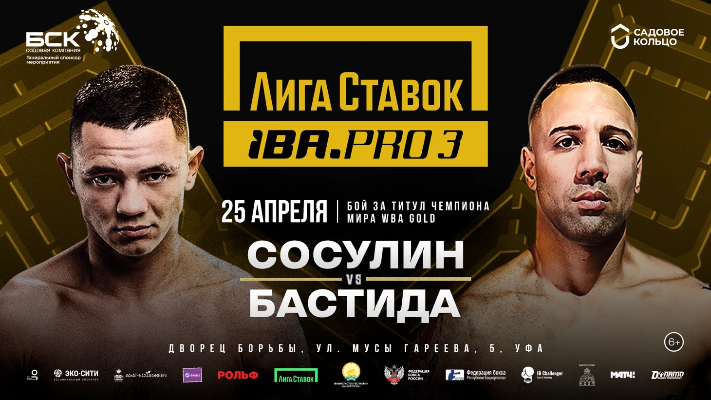 25 апреля в Уфе российский боксёр Павел Сосулин (10-0, КО 5) проведет бой за пояс WBA Gold в первом среднем весе против аргентинца Лукаса Брайана Бастиды (22-3-1, КО 13). Этот 12-раундовый поединок возглавит турнир «Лига Ставок IBA.PRO 3», организованный Iron&Gloves Promotions и Dynamo Boxing Promotions при поддержке Международной ассоциации бокса (IBA) и Федерации бокса России.