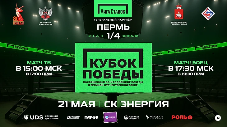 Четвёртый розыгрыш Всероссийского турнира «Кубок Победы» стартует 21 мая в Перми, где в рамках первого этапа состоятся четвертьфинальные поединки. Генеральным партнером «Кубка Победы» выступит букмекерская компания «Лига Ставок».