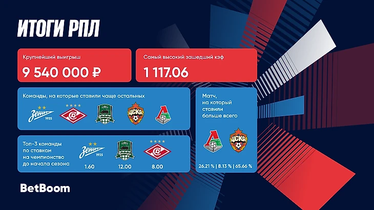 BetBoom поделился итогами РПЛ: почти 10 000 000 рублей выигрыша с одинара и спасение экспресса с кф 1 117 благодаря акции «РПЛ 2:0»!