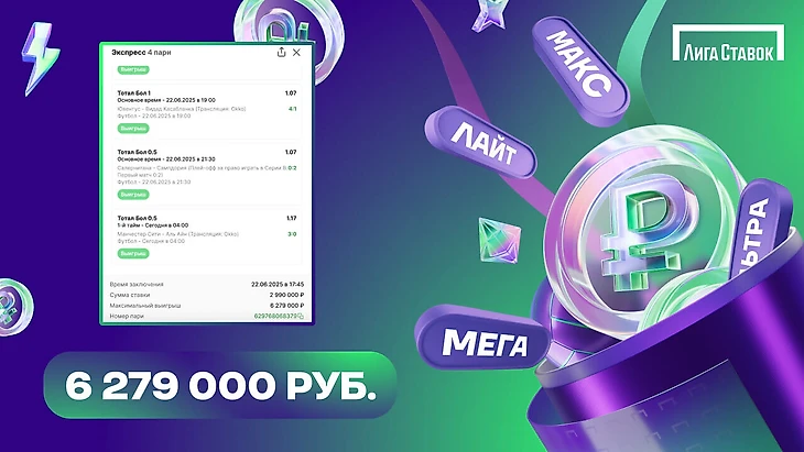 Экспресс из 4-х матчей принес клиенту «Лиги Ставок» более 6 млн рублей