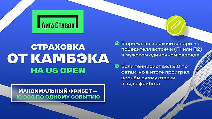 Лига Ставок запустила акцию «Страховка от КАМБЭКА» на US Open