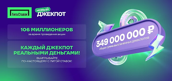 «Новый Джекпот» от «Лиги Ставок»: 106 миллионеров, 349 млн рублей выплат