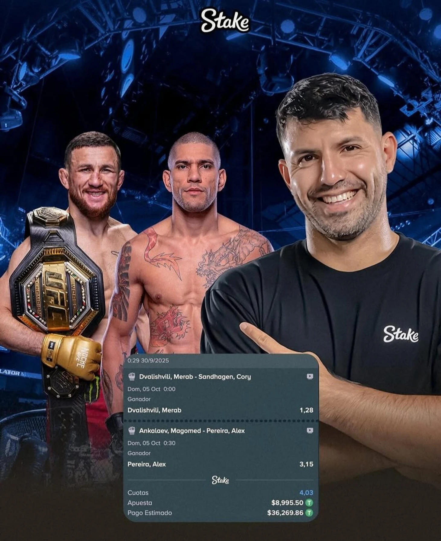 Серхио Агуэро сделал крупную ставку на главные бои UFC 320.