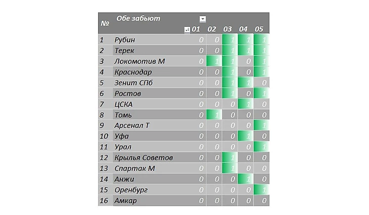 И вот, что мы имеем в итоге. 5 место в турнирной таблице, 3 забитых мяча (все дома) и 3 пропущенных (все от Зенита). Серия из 4 подряд игр на тотал меньше 2,5 и серия из 5 подряд игр, где не забивают обе команды.