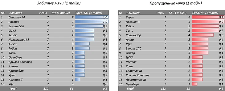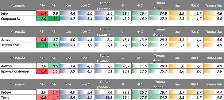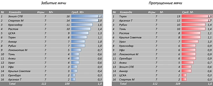Оцифровка №3. Статистика команд РФПЛ перед 8 туром