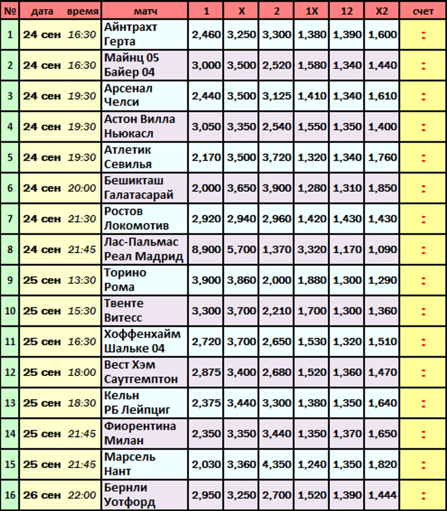 Дедлайн приема прогнозов - 16:30 24 сентября 2016 г.