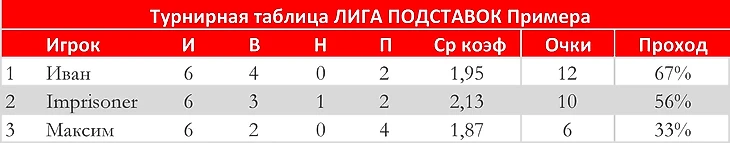 Я не буду ударяться в многоступенчатые рассуждения по этой игре. Скажу только самое важное. На текущий момент я отстающий по Примере. Это крайне нервирует. И я хочу догнать и перегнать своих соперников, что бы потом спокойно ставить ставки с хорошим коэффициентом. В связи с этим я не смотрю сейчас на то, что можно сыграть по не очень интересному коэффициенту. С смотрю на вероятность прохода. Поэтому моя сегодняшняя ставку нужна для тех, кто доставляется по маленьким коэффициентам.