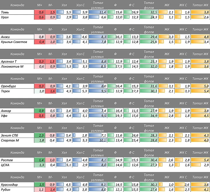 Ниже визуальное сравнение команд в разбивке по матчам. Что еще для ставок нужно?