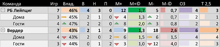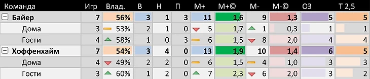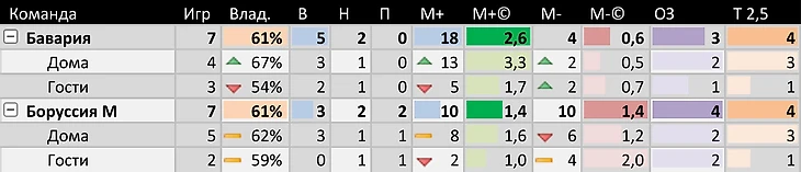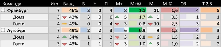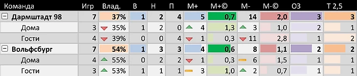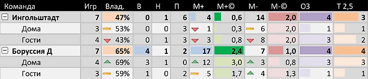 Тепер переходим к самому главному. Сводные таблицы по матчам 8 тура в Бундеслиге. Из них берем данные по форам и косвенно обращаем внимание на влдение мячом по каждой паре предстоящего тура. Переходим к таблицам по каждой игре.