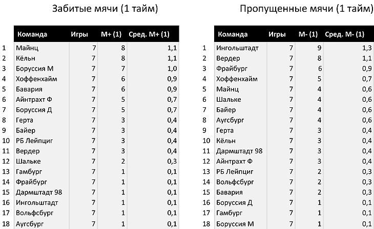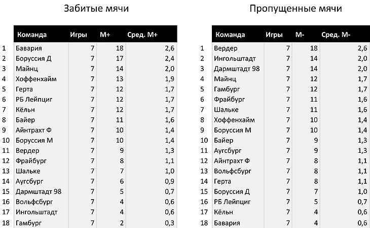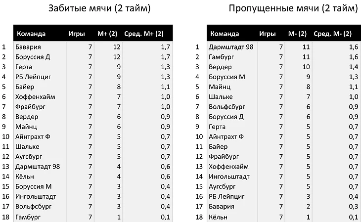 Оцифровка №19. Статистика команд Немецкой Бундеслиги перед 8 туром
