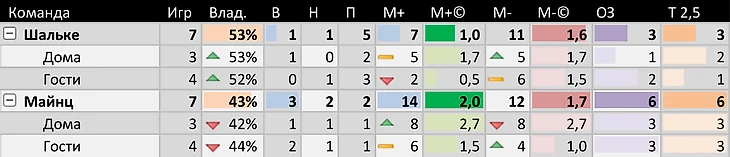 Ну и напоследок, товарищи, которые забивают в среднем два за игру, против Шальке, которые начнали забивать только в прошлом туре. Разница в форе не так существенна. Шальке (+0,5), Майнц (0). Шальке конечно приходит в норму, но не до такой же степени, что бы Майнц совсем перестал играть. Поэтому хозяева точно должны пропустить. А вот гости сыграют аккуратно. Почему Шальке считается фаворитом в линии понятно, но я в этой паре в исход не полезу. Максимум, к чему бы я стремился - это обе забьют.