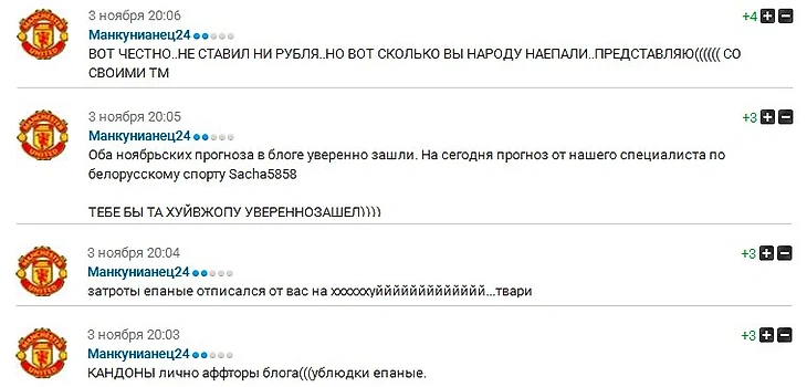 Логичное решение: скорее всего, если комментатор Манкунианец так эмоционально реагирует на 1 проигрыш из 7 прогнозов, то он просто очень-очень-очень эмоциональный человек. А значит после прохода кефа 4,57 он будет также эмоционально предлагать автору блога качественный горловой минет с проглатыванием.