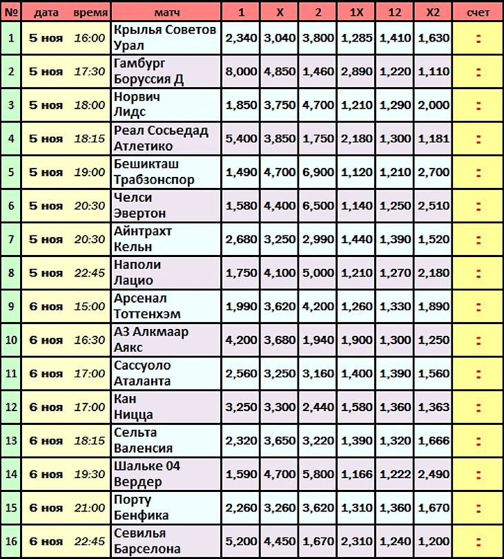 В помощь игрокам и себе выкладываю эксельку для заполнения прогноза. Жду прогнозов в комментариях или в эксельках у меня на почте (адрес в моем профиле на сайте).
